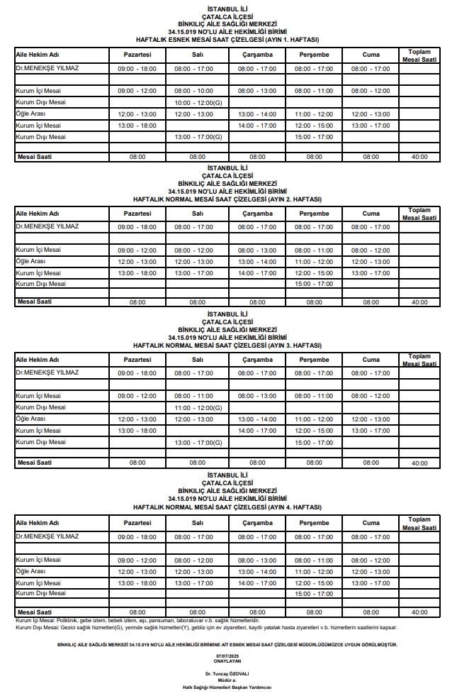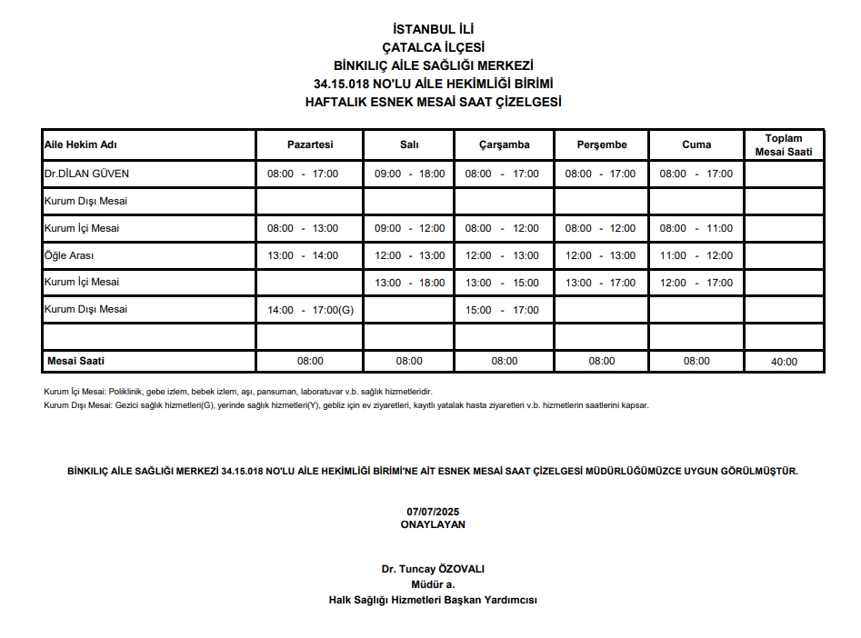 Çalışma Saatlerimiz